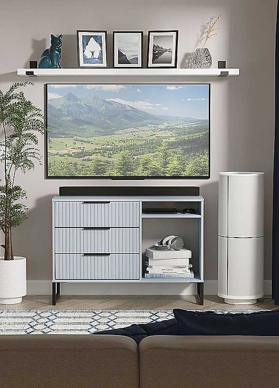 Fluted 3 Drawer TV Unit - Blue