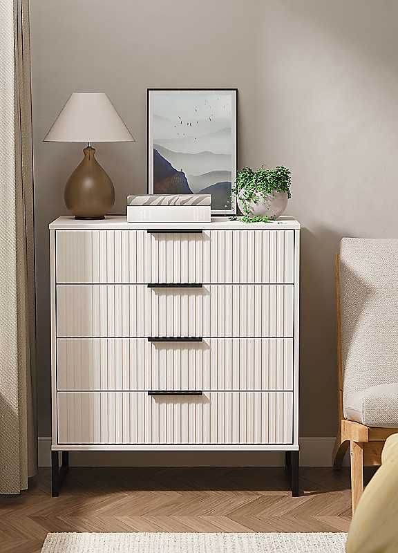 Fluted 4 Drawer Chest - Beige