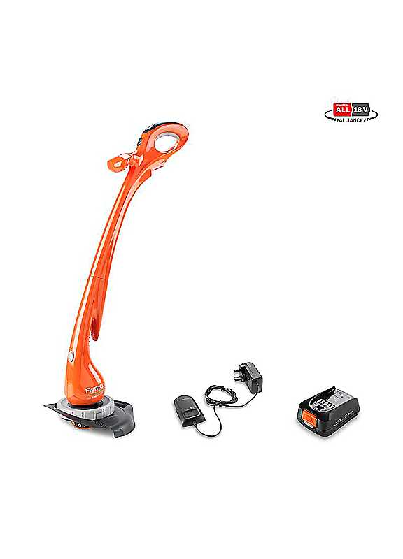 Trim with speed-the edge your garden deserves. The Flymo 18V EasiTrim 250 is a grass trimmer that makes achieving a perfect lawn quick and easy. Our cable-free grass trimmer is completely battery operated, allowing you to move around your garden with freedom and flexibility. The 18V EasiTrim 250 is powered by a POWER FOR ALL ALLIANCE battery system that can also be used with hundreds of other big-brand tools. The 18V EasiTrim 250 balances performance and utility to provide you with a convenient grass trimming experience that never compromises on comfort. An adjustable top handle and telescopic shaft allow you to work without aches and pains, while durable, low-noise blades deliver a quieter, less intrusive trim. Meanwhile, the two-in-one trimming and edging feature helps you to finish the job faster with no need to reach for another tool. 1 x 18V battery and charger included with the product.LED display clearly indicates battery capacity Line is automatically fed at each trigger release thanks to the automatic line feedNo restricting power cords for greater freedom and flexibility At the click of a button, easily change from trimming to edging mode for a neat finish Lightweight and well balanced design reduces fatigue during operationBattery voltage - 18VBattery capacity - 2.0AhOperating time - 28Typical battery charging time to 80% - 96 minTypical battery charging time to 100% - 124 minCutting width - 25cmLine diameter - 1.5mmFeed mechanism - AutomaticShrubbing features Plant guardWeight (with battery) - 2.1kgNoise level - 92dB