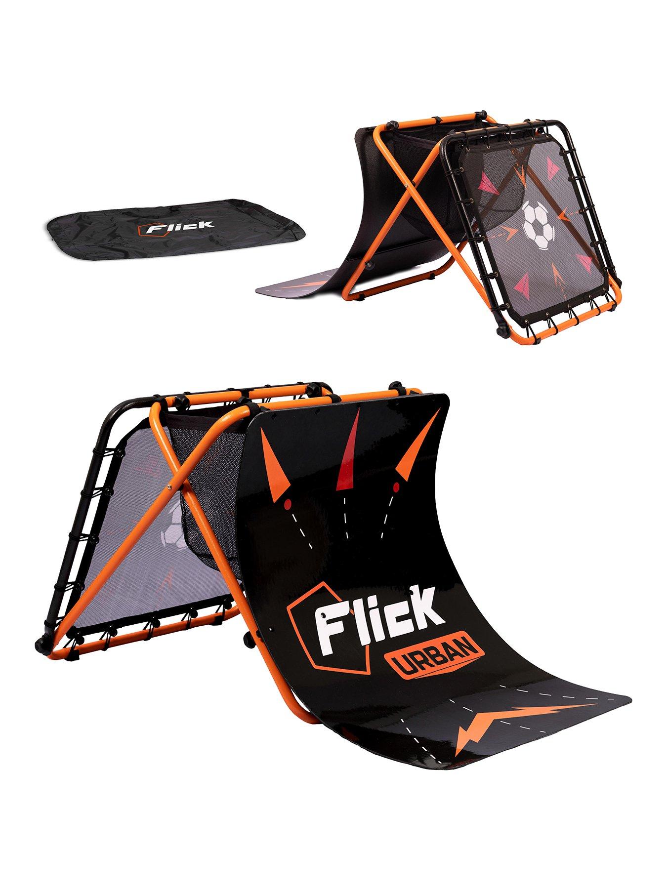 Add a whole new dynamic to your game with theFootball Flick Urban Soccer Skills Trainer. In a bold new design, this skills trainer enables players to pass the ball to the ramp and receive it at different heights and angles, to text their shooting skills! The first and only skills trainer to be scientifically proven to developcore skills by up to 73%, this skills trainer is used in top Premier League clubs including Manchester City, Liverpool FC & Tottenham Hotspur, along with theprofessional coaching academies and intens of thousands of back gardens! Kids will love improving their skills such as control, passing, first touch, volleying and technique by using the front curved ramp, rear rebounder and central target net. Easy to build and fold away, this set also comes with a carry pack included for easystorage and transportation. Depth: 1370 MM Height: 720 MM Width: 740 MM From Football Flick - The home of football training Pitch. Home. Street. Garden. Park. Alone or with friends, Train Like A Pro ! Football Flick - The World's #1 Football Skills Training Range. Three-dimensional training experience Collapsible for portability and easy storage. Also comes with a carry bag. Used in elite academies (Manchester City and Liverpool), and tens of thousands of back gardens all over the world. Develops passing, control, accuracy, volleying and more. Designed for individual or multi-player use Scientifically validated to improve core skills. A world's first.