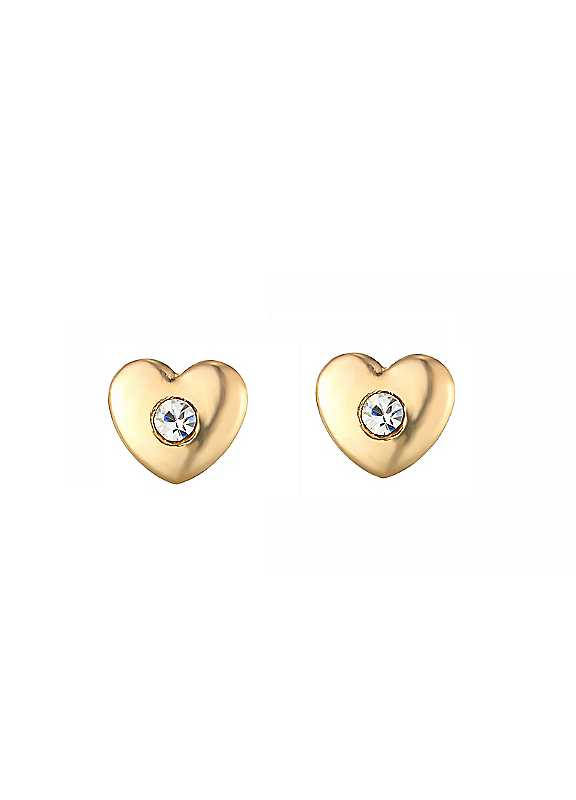 For You Collection 9ct Gold Heart Crystal CZ Stud Earrings - Size ONE SIZE