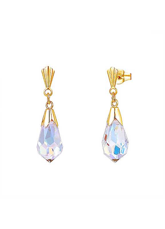 For You Collection 9ct Solid Gold Aurora Borealis Crystal Drop Earrings