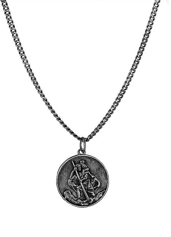 The gent's oxidised sterling silver St. Christopher necklace is a meaningful and stylish accessory that carries both spiritual significance and aesthetic appeal. Meticulously crafted from high-quality oxidised sterling silver, this necklace features a pendant in the shape of St. Christopher, the patron saint of travellers. The oxidised finish adds depth and character to the pendant, creating a weathered and vintage look that adds to its charm. The intricate detailing on the St. Christopher design showcases his iconic image as a protector and guide for those on their journeys. This necklace comes in a For You Collection gift box, ready for gifting.Brand: For You CollectionSt Christopher pendant made from sterling silverChain made from sterling silverCurb chain styleEntire necklace oxidised for a darkened lookPresented in a For You Collection gift boxChain length approx. 50 cm (20 ins)