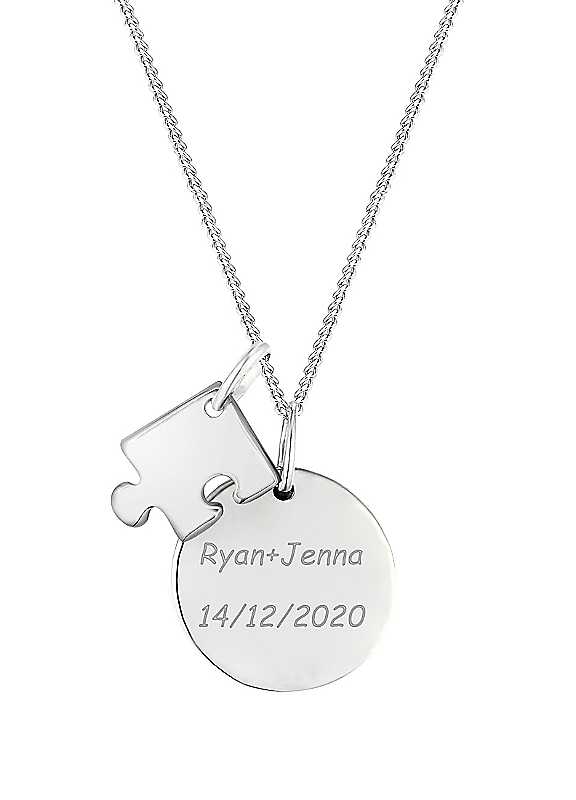 For You Collection Personalised Sterling Silver Disc Necklace with Puzzle Charm - Size ONE SIZE