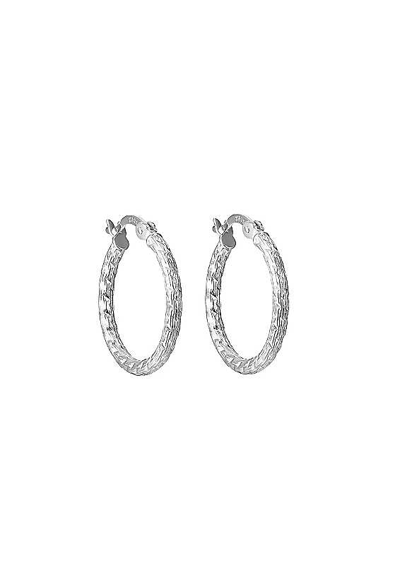 Crafted in sterling silver, these diamond-cut Creole hoops exude timeless elegance. The intricate detailing catches the light beautifully, adding a subtle sparkle to your everyday look. Lightweight and secure with hinged fastenings, they offer both comfort and classic style. A versatile accessory, ideal for both casual and formal wear, making them a jewellery box essential.Made from sterling silverParty JewelleryCreole FittingFashionable jewelleryFor You Collection gift box includedEarring size approx. 25W x 25H mm | sterling silver hoop earrings, hinged hoop earrings, creole hoop earrings, small hoop earrings, office wear earrings, diamond cut hoop earrings, small sterling silver earrings