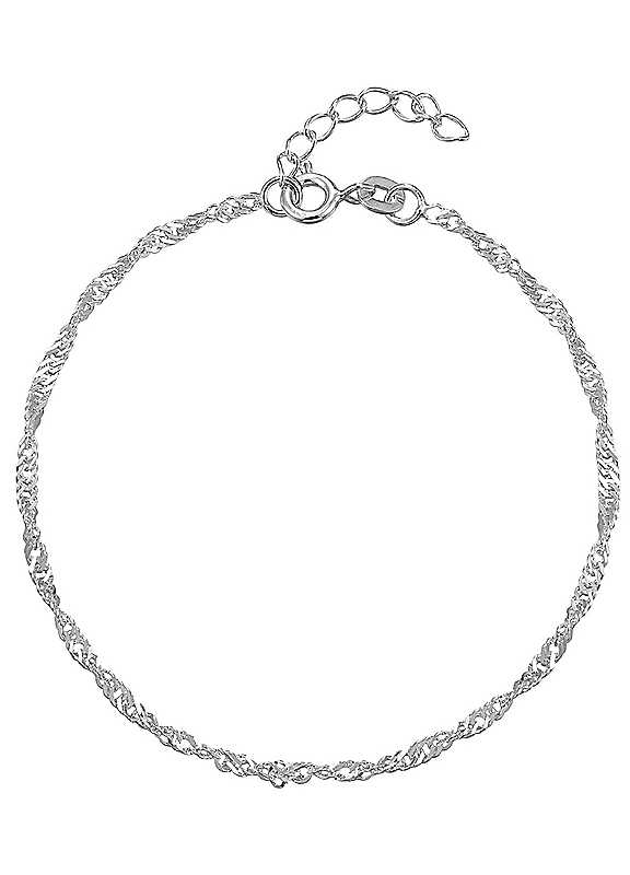 This sterling silver Singapore bracelet is suitable for all your small charms so you can change up your look, or is so stylish so you can wear it alone as a layering bracelet with its delicately twisted detail. It measures a total of 7 inch long, being 6 inch + a 1 inch extension and will arrive inch a gift box.Brand: For You CollectionSingapore chain braceletMade from sterling silverArrives in a For You Collection gift boxLength approx. 7 inch (6 inch + 1 inch extension)
