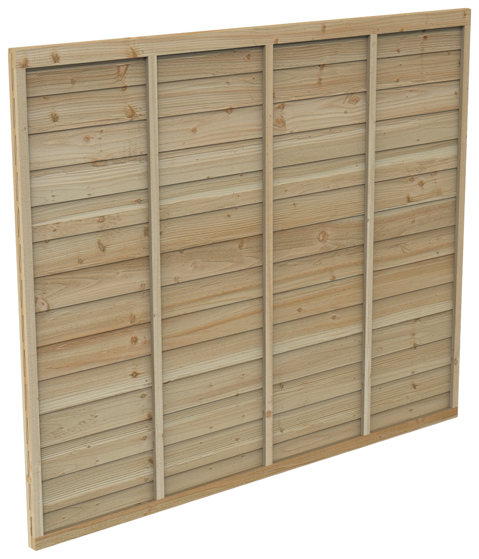 Forest Garden Pressure Treated Overlap Fence Panel - 1.83 x 1.5m (6 x 5ft approx) - Combining durability, style, and high quality finish, the Larchlap pressure treated panel is the definitive choice in overlap fence panels. The straight-cut boards offer a clean, contemporary look that blends seamlessly into any garden setting. Each panel features five vertical battens on both sides, delivering superior reinforcement and structural integrity. A sturdy frame adds to the overall strength, and panels can be installed with or without gravel boards, depending on your garden design. Pressure treated for long-lasting protection against rot and decay, these panels are backed by a 15-year Anti-Rot Guarantee. Proudly manufactured in the UK using responsibly sourced timber, they reflect both quality craftsmanship and environmental responsibility. Available in four heights – 6ft (1.8m), 5ft (1.5m), 4ft (1.2m) and 3ft (0.9m).