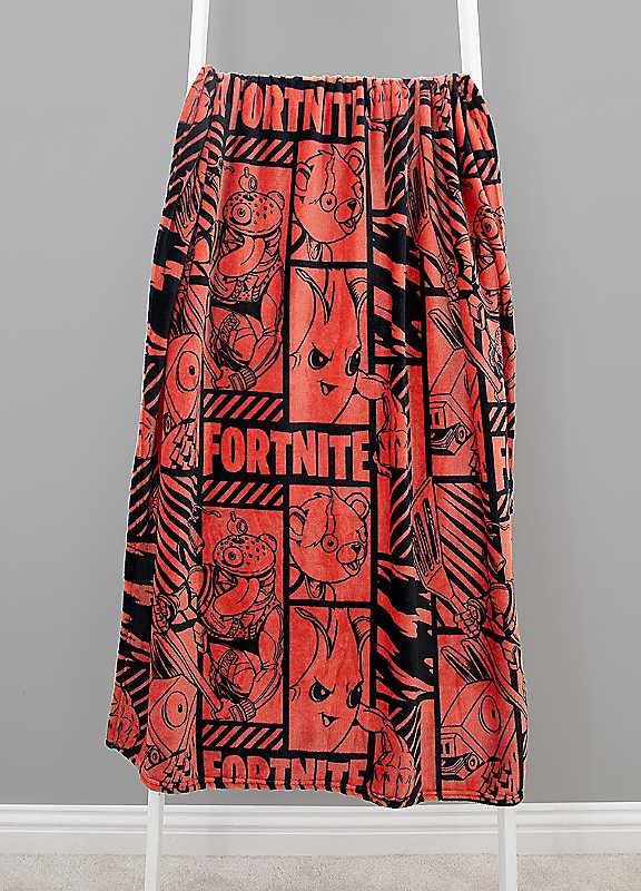 Winner Winner Chicken Dinner! Perfect for fans of Fortnite and young gamers, this officially licensed Fortnite fleece blanket is a perfect gift for gamers and Fortnite fans alike. This blanket features a print of Fortnite favourite characters including Peely, Beef Boss, and Cuddle Team Leader in a black comic book style, on a red background. This fleece blanket is great all around the house, either as an extra layer in bed, lazing on the couch, keeping yourself comfortable when gaming in a chair or doing homework. This blanket is lightweight and folds up to a compact size, making it great for car journeys, travel, and holidays, whenever you need to wrap up warm.This large children's fleece blanket measures 100 x 150cm, plenty big enough to keep you covered up, or act as a throw at the end of a bed. Made from soft strokable recycled polyester, this Fortnite fleece blanket is machine washable, so it's easy to throw in to a wash to freshen up if there's any spills or accidents, and tumble dryer safe to quickly dry ready to be used again.Thermal featuresMachine washableTumble dry at a low temperature100% PolyesterSize approx. 100 x 150 cm