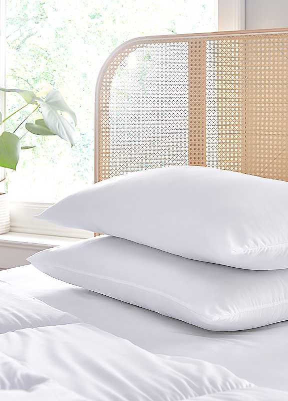 Exclusive. Enjoy a comfortable night's sleep with the Freemans Home Medium Support Pillows. Made with soft hollowfibre, the pillows perfectly support the head and neck, promoting better sleep. All materials in these Freemans Home pillows are hypoallergenic, and machine washable, keeping your bed fresh for a peaceful night's sleep. Made in UK Hypoallergenic Pack contains 2 x Freemans Home pillows Machine washable Outer material: 100% Polyester Microfibre Filling: Hollowfibre