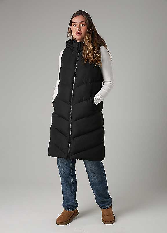 French Connection Midi Quilted Gilet With Hood - Black - Size XS