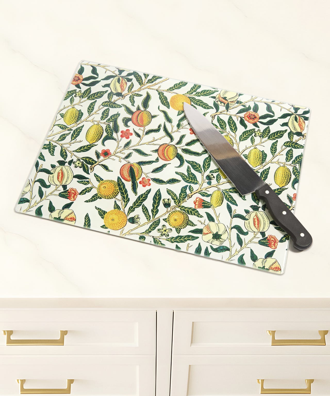 Cut fruit, prep veg or make your sandwich on our elegant fruit design chopping board. Made from glass so it's extremely hygienic and durable. Match with other items in our Fruits collection. Glass. Size: 40x30cm approx.