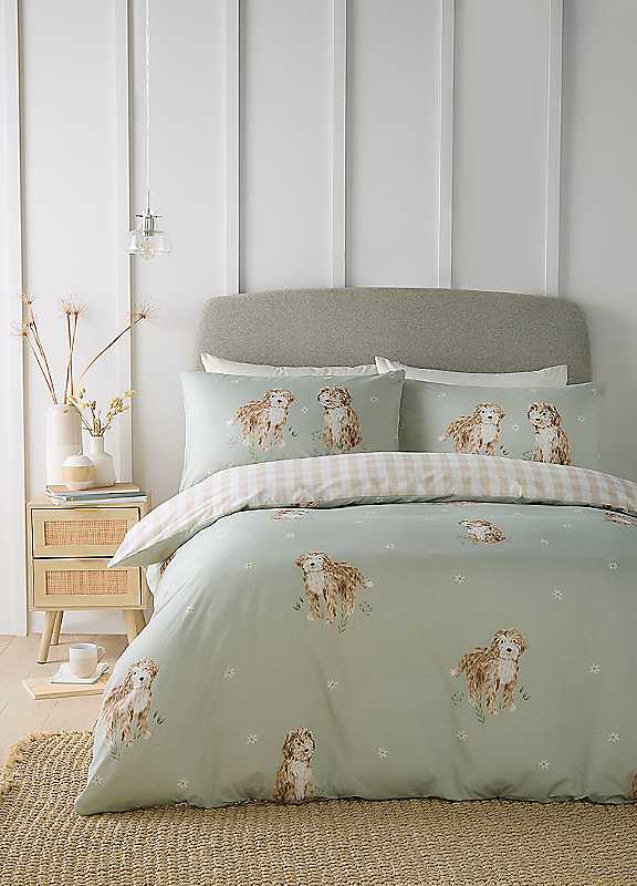 Fusion Hattie The Cockapoo Duvet Cover Set - Green - Size Double