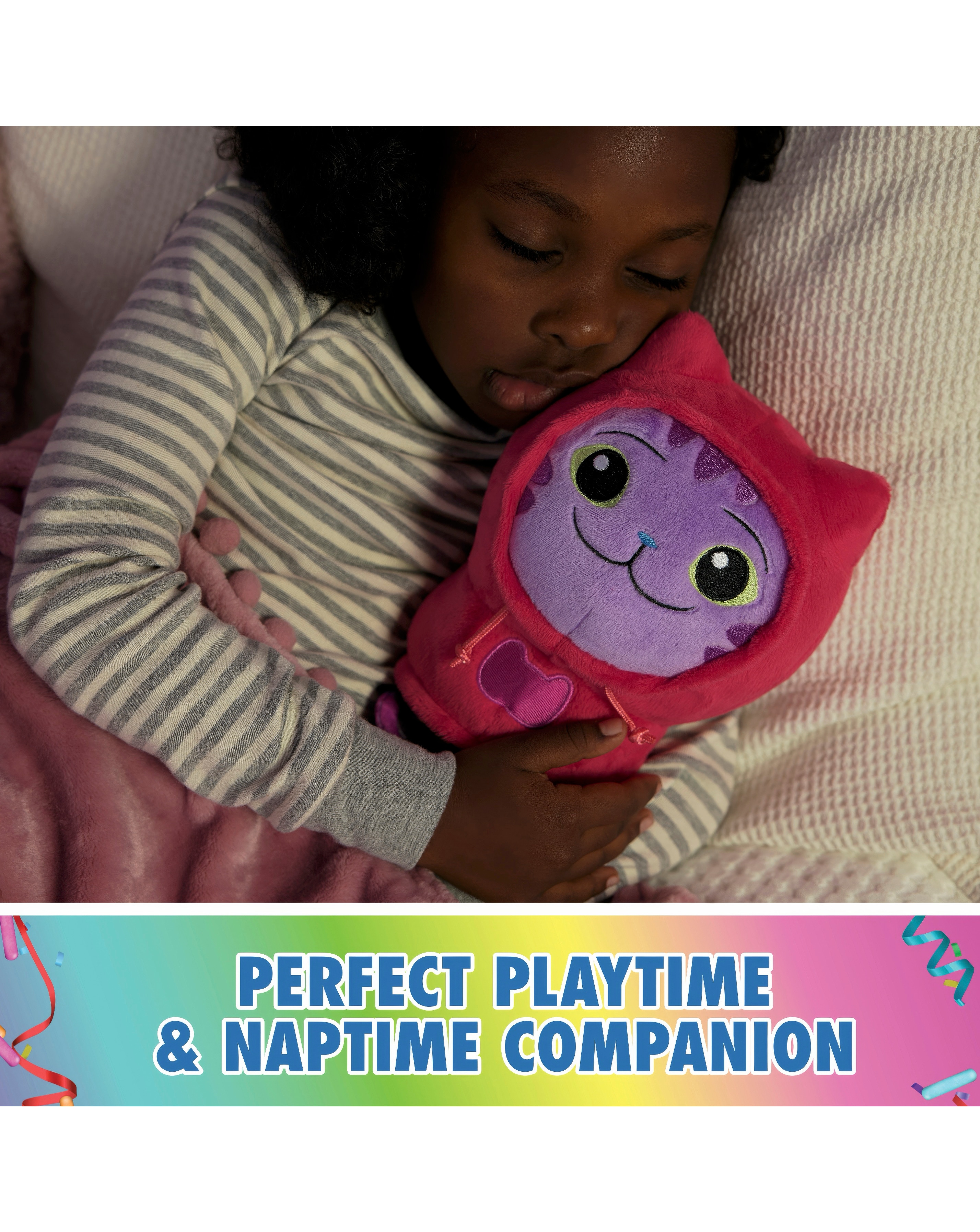 Create never-ending pretend play adventures with the Move & Groove Daniel James DJ Catnip Plush Toy! At 10-inches tall, he's the purrfect size for on-the-go play, and for snuggling up to when it's bedtime! This premium plushie also features super-soft arms, that wave up and down when you squeeze his belly, so he's always ready to move and groove when its time to party! For even more purr-ific playtime adventures, look for the Fin-tastic MerCat plush, with her flapping mermaid tail, to make sure the fun never ends! Gabby's Dollhouse toys for girls & boys are gifts for kids that enjoy building pretend play doll house worlds. Make their entry into dollhouse play memorable with lovable toy figures, dollhouse accessories and dollhouse furniture to collect and configure! 10-INCH-TALL PLUSHIE: Get into the groove with this cat-terrific party kitty! At 10-inches tall DJ Catnip is a standout among plushies and a purr-ific playtime & naptime companion!