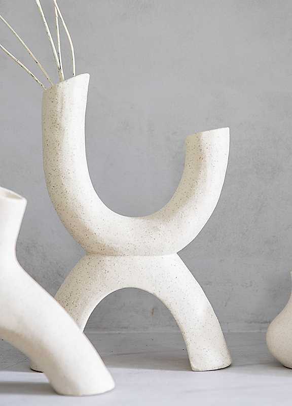 This unusual ceramic vase offers an organic shape inspired by nature, perfectly complemented by the matt textured glaze.ClayDimensions approx. 21 x 8 x 31 cm