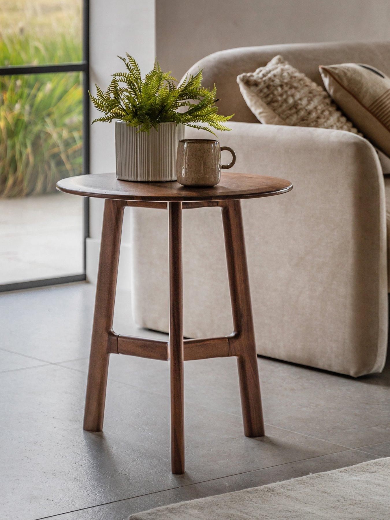 Gallery Direct Madrid Round Side Table With A Strong Elegant Design, This Collection Is A True Showstopper. This Stylish Dining And Occasional Range Is Made Using Solid Walnut And Features Soft Edges To Enhance The Mid-Century Appeal. Finished In Its Natural Colours, This Walnut Collection Features Both Dining And Living Pieces Including A Striking Display Unit. Assembly: Self Assembly Depth: 500 Mm Height: 575 Mm Material Content: Solid Walnut Width: 500 Mm Adjustable: N Table Type: Round Removable Shelves: N Contains Lights: N