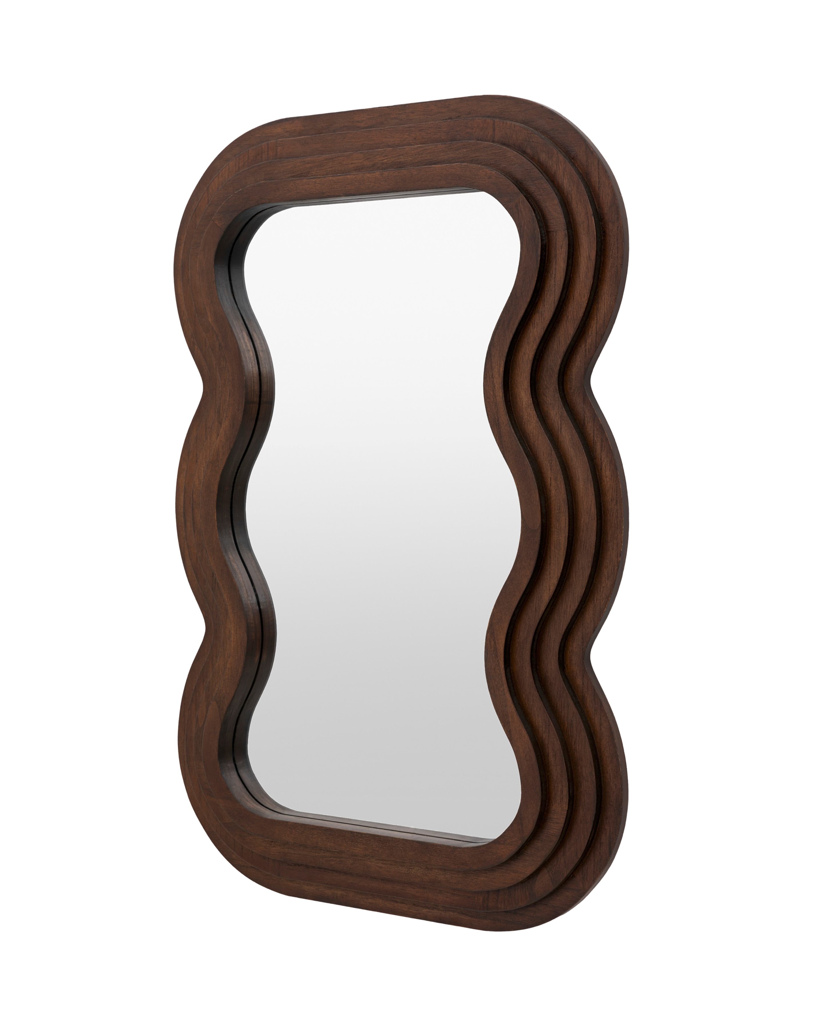 Transform your room with our exquisite brown wooden mirror, where classic charm meets modern elegance. Featuring a distinctive wavy edge, this mirror adds a touch of fluid sophistication to any decor. The layered inset frame introduces depth and texture, creating a rich, dimensional effect. The warm brown wood frame brings natural beauty, making it a perfect addition to living rooms, bedrooms, or hallways. Whether hung on the wall or used as a dressing table mirror, it enhances your space with a statement of style and refined elegance.