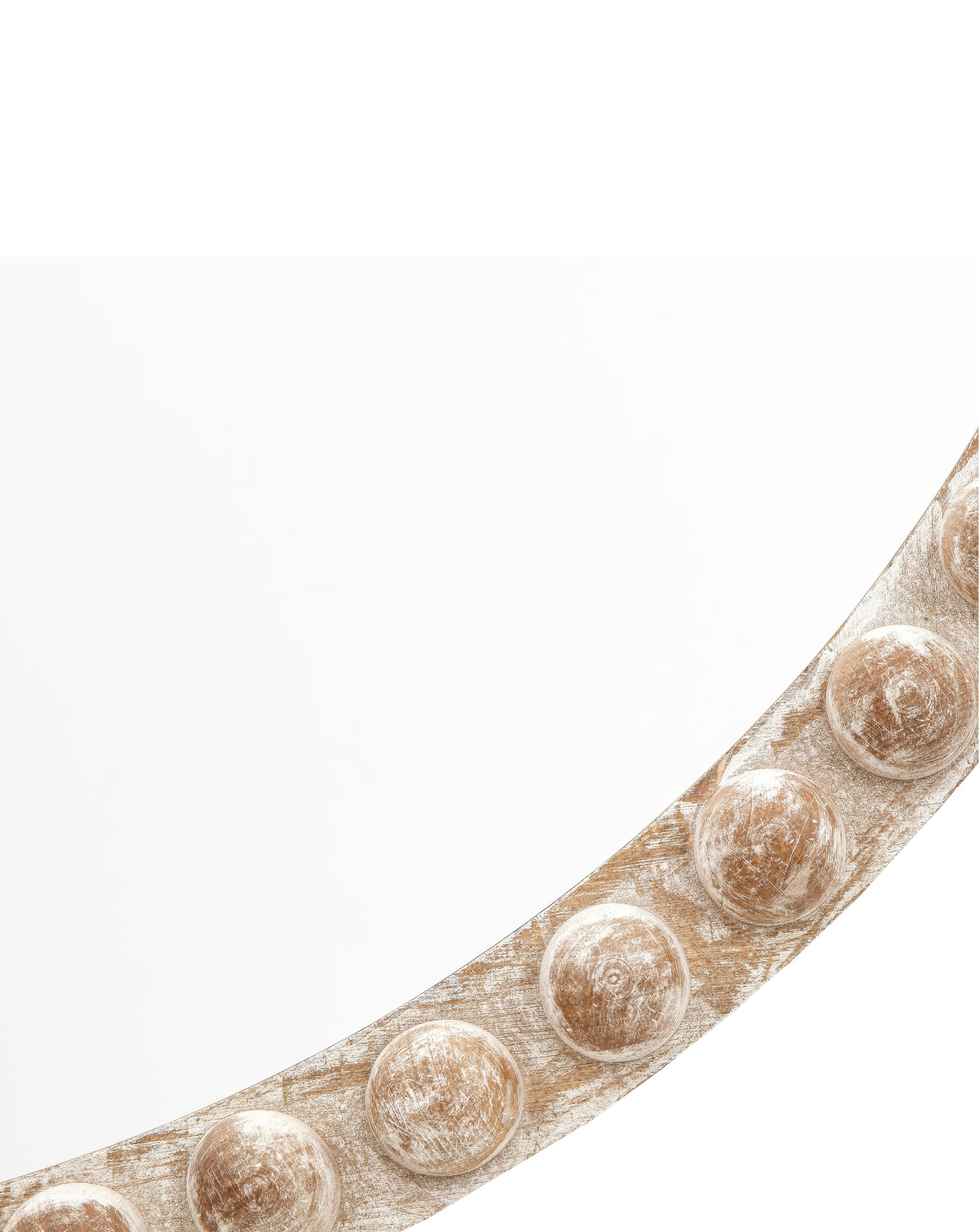 This charming round mirror combines the allure of vintage design with rustic elegance. The weathered finish adds character and warmth to the home whilst the round detailing on the frame adds a subtle classic touch to the home. Wipe Clean. Wall Mounted. 2 x Sawtooth.