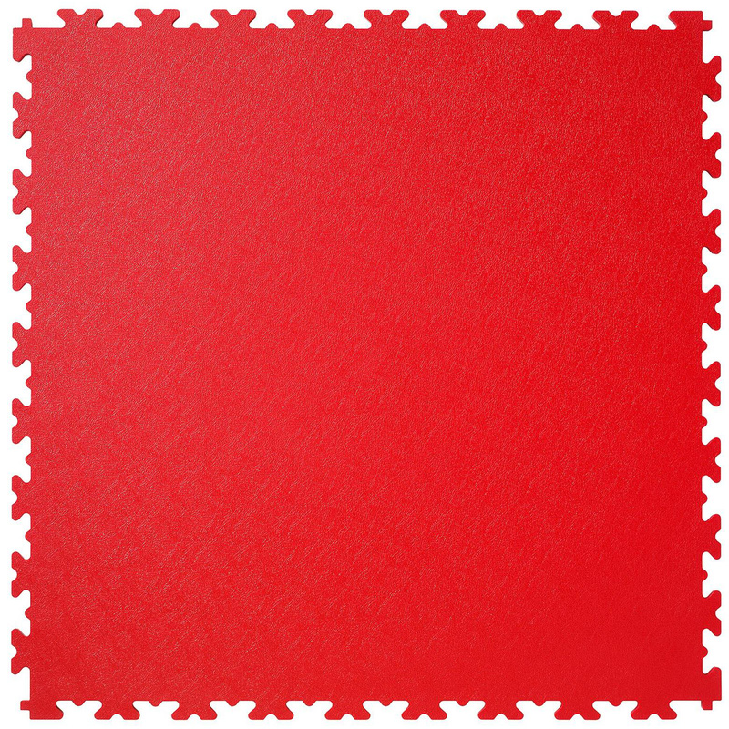 Tough, reliable, and designed for heavy use, these 7mm thick interlocking textured PVC floor tiles are proudly UK-made and built to perform. You can easily install them over most existing surfaces with no glue, special tools, or technical skills needed—simply tap them into place with a rubber mallet for a secure fit. Perfect for temporary or permanent setups, these tiles can be lifted, moved, and reused as needed. They protect existing subfloors, eliminate dust, cold, and damp, and are chemical and impact-resistant. * Easy installation – tap into place with a rubber mallet, no glue required * Heavy-duty protection – withstands vehicles, machinery, and impact * Insulation properties – eliminates dust, cold, and damp from concrete floors * Available in a choice of colours – including Blue, Black, Graphite, and Red | Garage Floor Tile Company X Joint Interlocking Floor Tiles (1m2) X500/7 (4 pack) in Red | Rubber