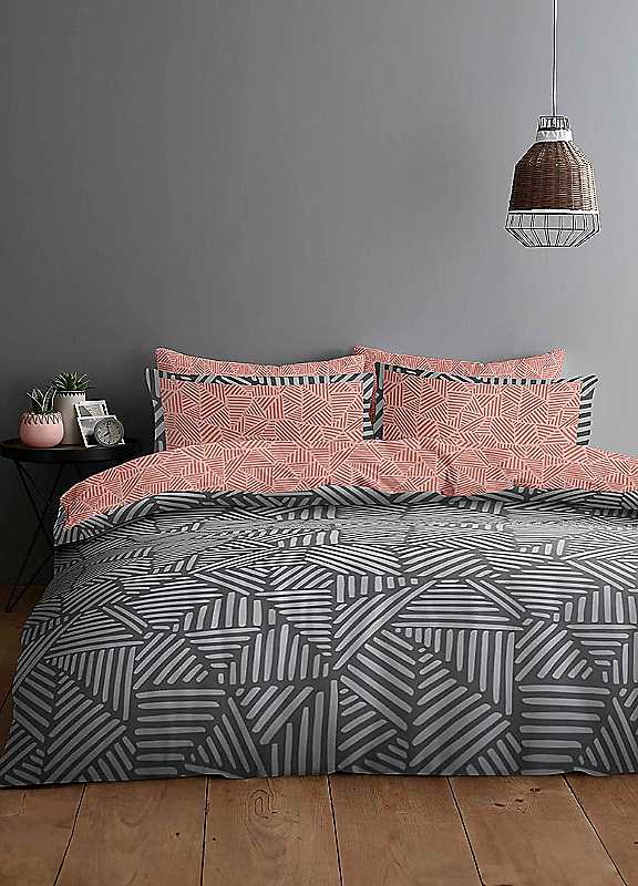 Settle down to a restful and peaceful night's sleep underneath this soft and comfortable duvet cover, adorned with a modern design. An attractive and modern addition to your bedroom furnishings. Complete bed set includes 1x duvet cover, 1x pillowcase with the single set and 2x pillowcases with the double and king sets, 1x fitted sheet. Tumble dryIron on low heatEasy to maintainQuick drying fabricButton fasteningFitted sheet includedMachine washable at 40°C30% Cotton, 70% Polyester