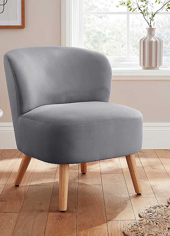 Bring comfort and style to your space with the Evie Velvet Accent Chair. Upholstered in soft, plush velvet and supported by natural wooden legs, this elegant chair blends modern design with luxurious softness. Perfect for any living area, the Evie offers both sophistication and practical comfort, whether used as a statement piece or a cosy spot to relax.Weight of Product: 6.3 kgSuggested Number of People for Assembly: 2Tool Kit Included: NoSelf-AssemblyManufacturer's 1 year guaranteeWipe clean only, avoid household cleaners/abrasivesSpecifications Material: VelvetAssembled dimensions approx. 70H x 53W x 66D cm | grey accent chair, velvet accent chair, accent comfy chairs