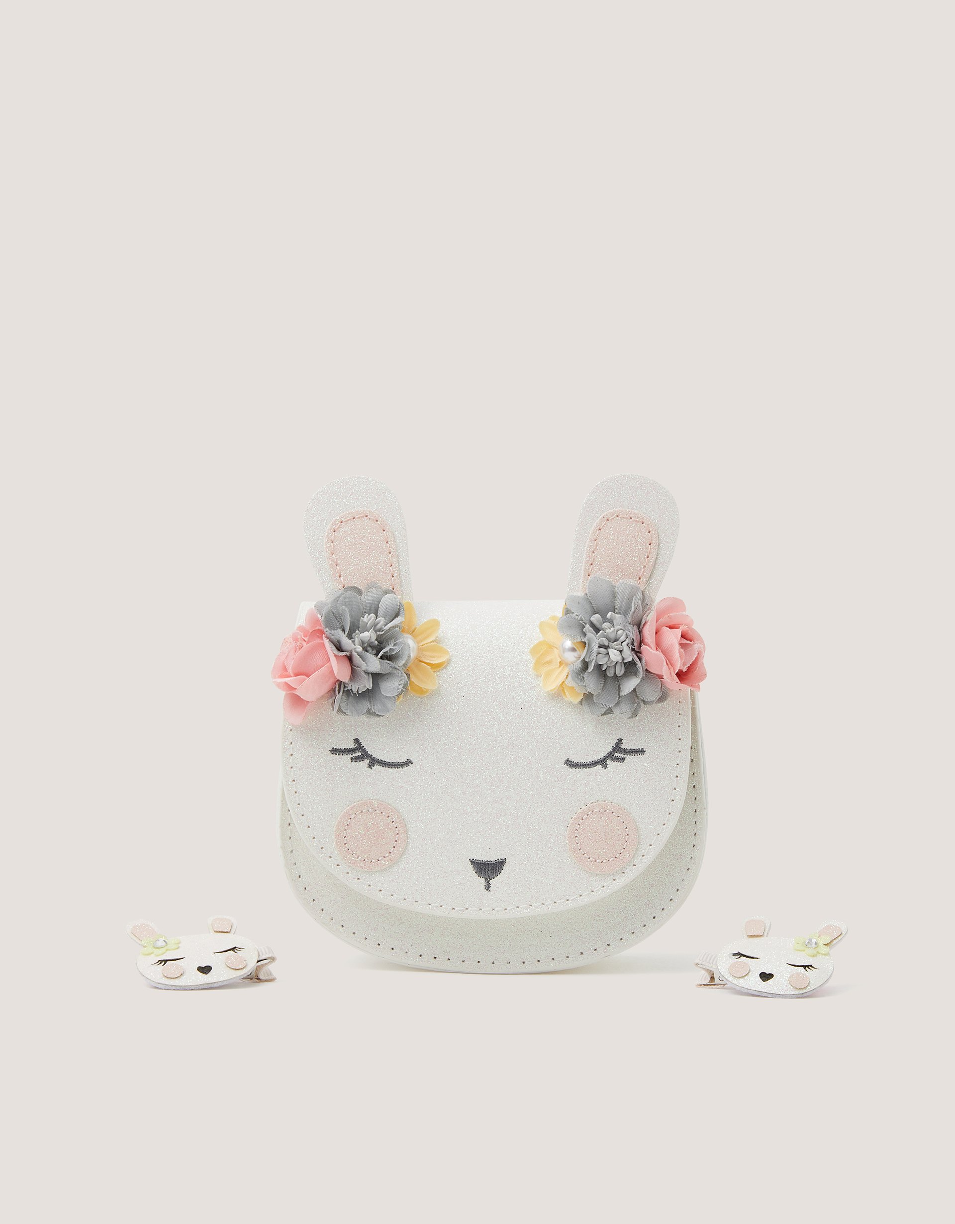 Glitter Bunny Bag & Hair Clips Set Embellished, Size: