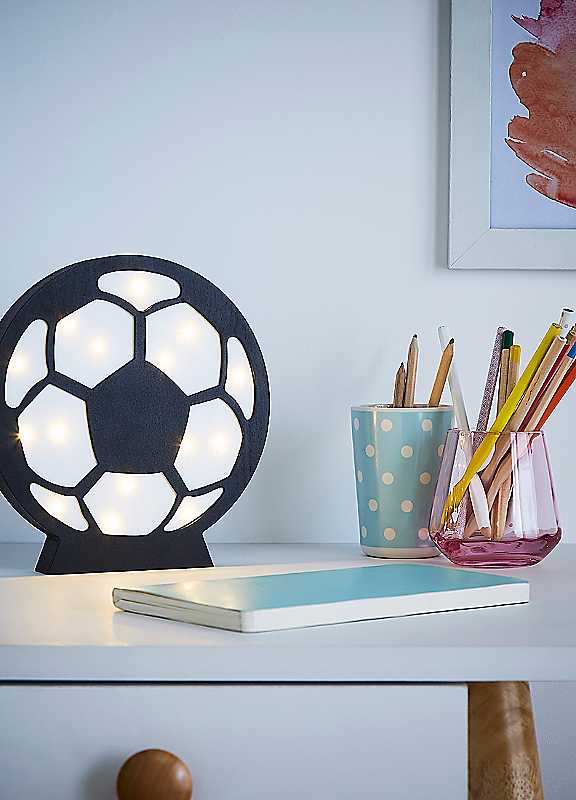 Score big with this fantastic Wooden Football Light! Perfect for young fans, sports enthusiasts, or anyone looking to add a playful, graphic touch to their space.BatteryBulb Included LED 1 WattWoodDimensions approx. 30H x 17W x 2.5D cm