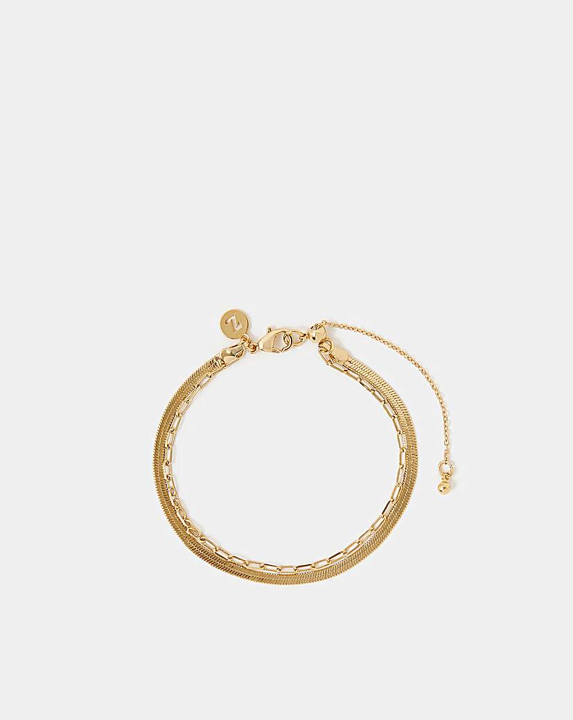 Accessorize 14ct Gold-Plated Layered Bracelet Part of the Z by Accessorize collection: jewellery designed to dazzle and shine, it's plated in 14 carat gold for a luxe, longer-lasting finish. An essential addition to your jewellery box, this layered bracelet features a duo of omega and paper clip chains, that adds a little sparkle to your daily look. Complete with a lobster clasp and extender. Composite: Brass 100%