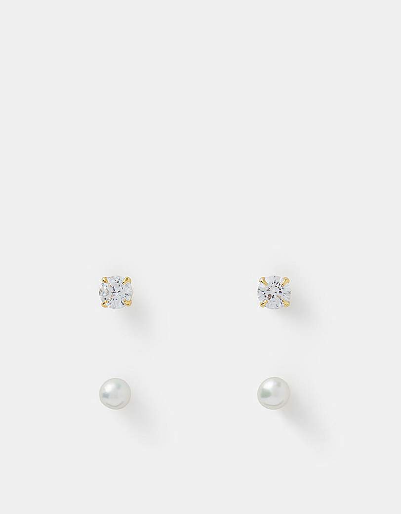 Accessorize 2-Pack 14ct Gold- Stud Earrings Part of the Z by Accessorize collection: jewellery designed to dazzle and shine, it's plated in 14 carat gold for a luxe, longer-lasting finish. Enhancing your ears just got easier with these dazzling studs. Set with pearls and diamantes, they're a must-have for your jewellery box. Stacking up or wearing solo, they're sure to shine every time! Two pairs included. Non-refundable. Composite: Brass (Recycled) 79% , Pearl 9% , white cubic zircon 12%