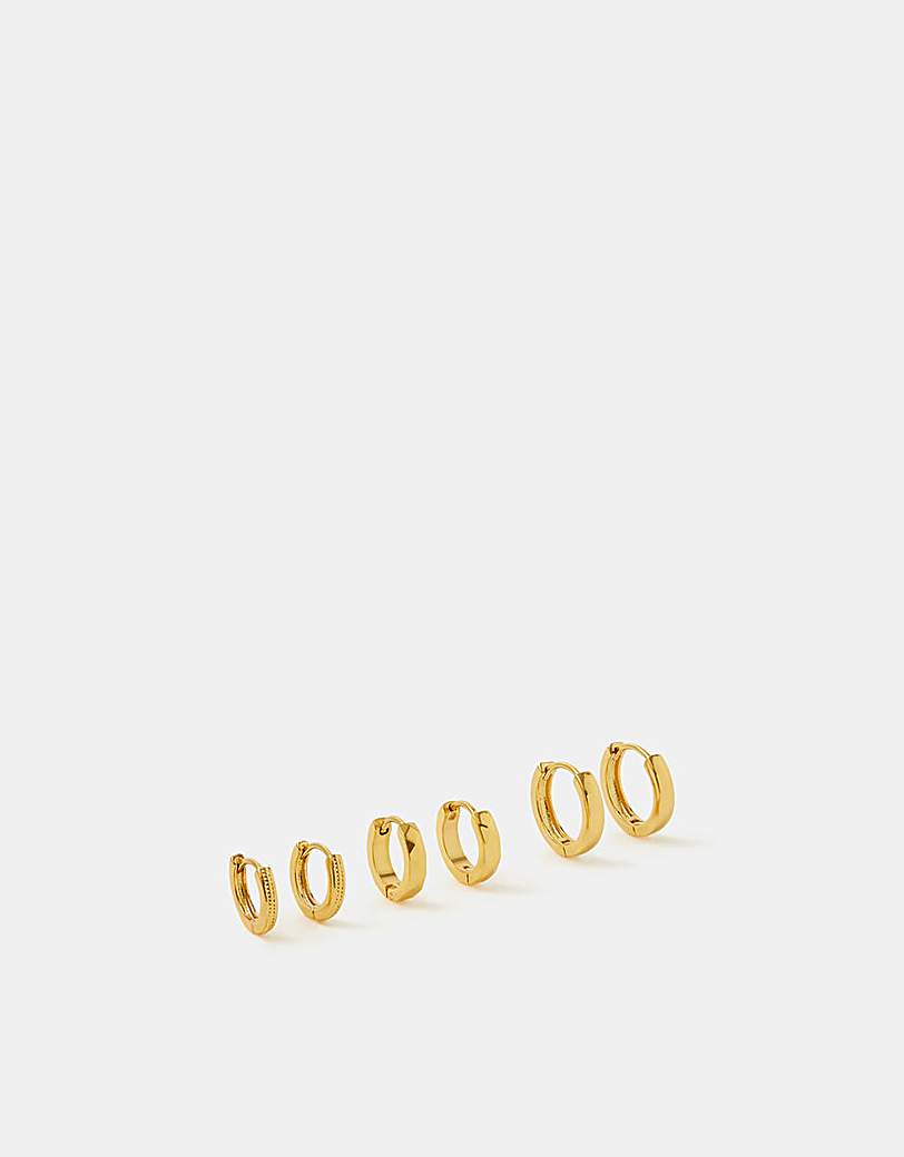 Accessorize 3-Pack Clicker Earrings Part of our Stainless Steel Jewellery collection: designed with PVD coating for a longer-lasting, waterproof and low-maintenance finish.An essential for every gold girlie's jewellery box. These hoops are are designed with easy clicker fastenings with a mix of plain, textured and etched details. Three pairs of earrings included.Non-refundable. Composite: Stainless Steel 100%