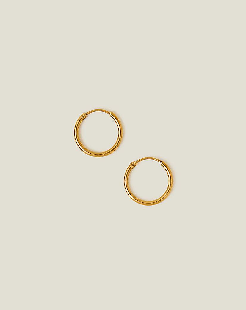 Stainless Steel Medium Hoops Everyone...and we mean everyone needs a pair of gold hoops, no matter what the occasion. Finished with a secure hinged closure.Non-refundable. Introducing our most-durable collection yet. Crafted in stainless steel, this style is coated in PVD for a longer-lasting, water-resistant and low-maintenance design. Composite: Stainless Steel 100%