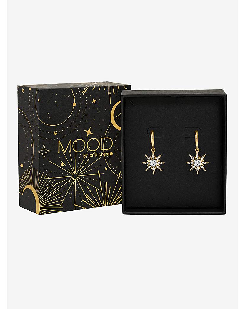 Mood Gold Plated Celestial Earrings - Gift Boxed Our Mood Gold Plated Celestial Earrings makes the perfect meaningful gift for someone special. Featuring a dreamy celestial style, designed to shine. Celebrate your loved ones this season with our charming gift box. Material: Gold Plated Base Metal Fastening: Lobster Clasp Width dimension: 15mm, length dimension: 30mm. Non-returnable: in the interest of hygiene we are unable to exchange or refund this item unless faulty, this does not affect your statutory rights.