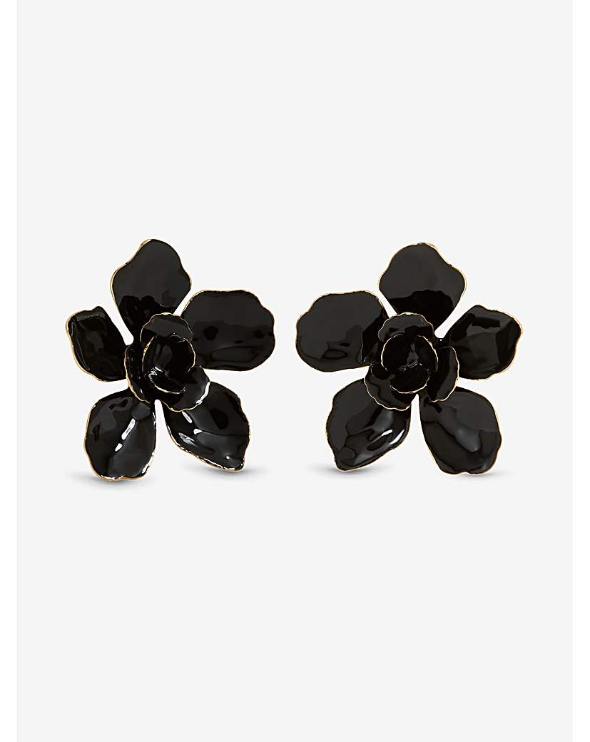 Mood Jet Statement Flower Earrings Our Mood Jet Statement Flower Earrings are made to stand out this season, featuring a delicate and elegant, these earrings pair polished gold tones with bold jet floral detailing. Their fresh, feminine design adds a subtle touch of charm to any look, making them perfect for both everyday wear and special occasions. Fastening: Post and bullet back Material: Gold plated base metal Width: 43mm, length: 43mm. Non-returnable: in the interest of hygiene we are unable to exchange or refund this item unless faulty, this does not affect your statutory rights.
