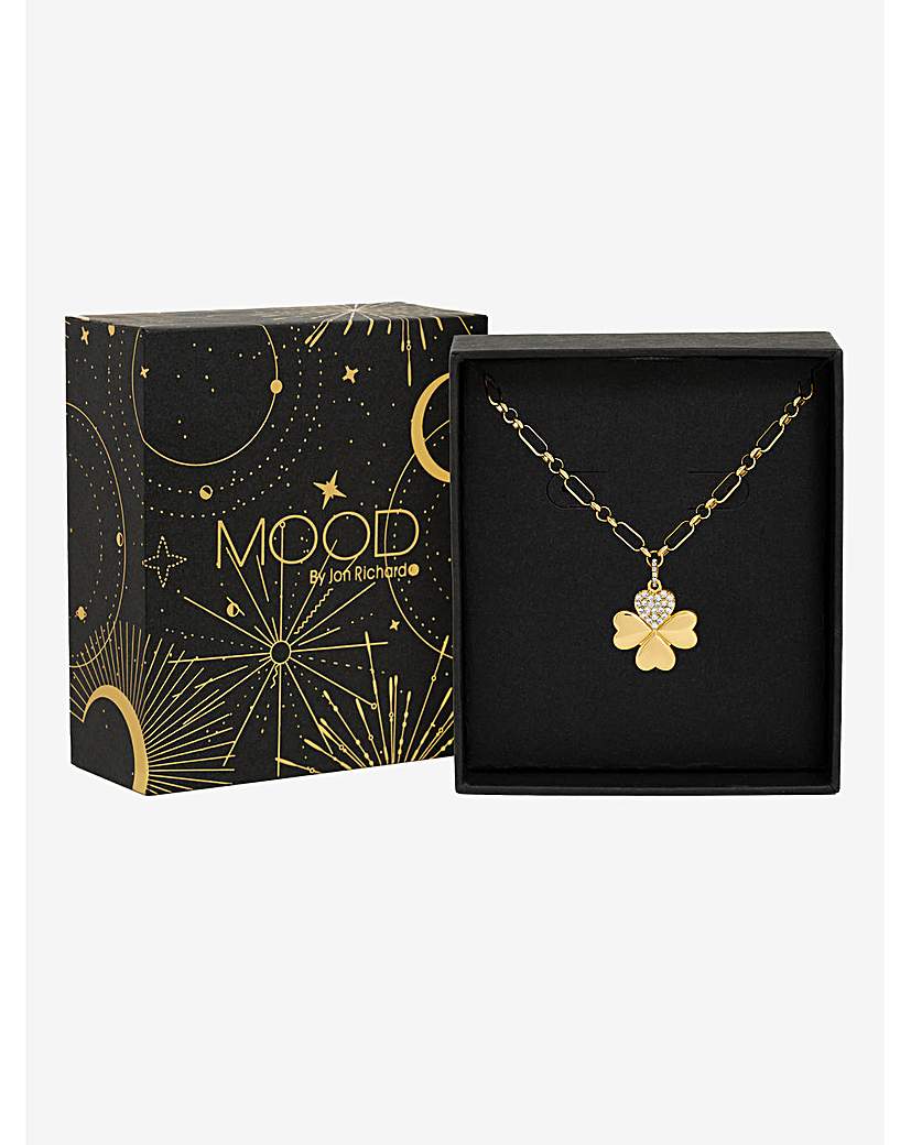 Mood Gold Plated Clover Pendant - Gift Boxed Give the gift of good fortune with our Mood Gold Plated Clover Pendant. This elegant piece features a classic four-leaf clover design, beautifully finished in radiant gold plating - a timeless symbol of luck, hope, and positivity. Material: Gold Plated Base Metal Fastening: Lobster Clasp Width dimension: 15mm, length dimension: 15mm.