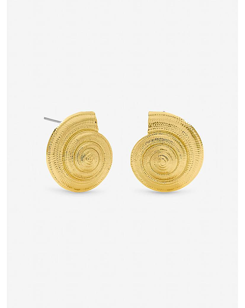 Inicio Gold Plated Statement Shell Earrings - Gift Pouch Our Inicio Gold Plated Statement Shell Earrings are designed to add a touch of coastal elegance to your look, Featuring a bold, polished shell-inspired charm, these earrings make a stylish statement to your summer looks. Fastening: Post and bullet back Material: Gold plated base metal Width: 22mm, length: 22mm. Non-returnable: in the interest of hygiene we are unable to exchange or refund this item unless faulty, this does not affect your statutory rights. Comes in gift pouch
