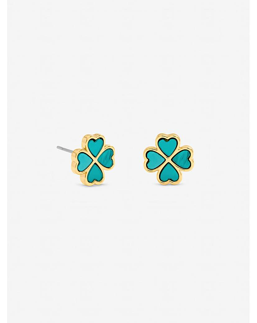 Jon Richard Gold Plated and Turquoise Clover Huggie Earrings Our Jon Richard Gold Plated and Turquoise Clover Stud Earrings feature a vibrant turquoise clover set in polished gold plating. This timeless stud design brings a pop of colour and effortless elegance to any look. Fastening: Post and bullet back Material: Gold plated base metal Width: 10mm, length: 10mm. Non-returnable: in the interest of hygiene we are unable to exchange or refund this item unless faulty, this does not affect your statutory rights.