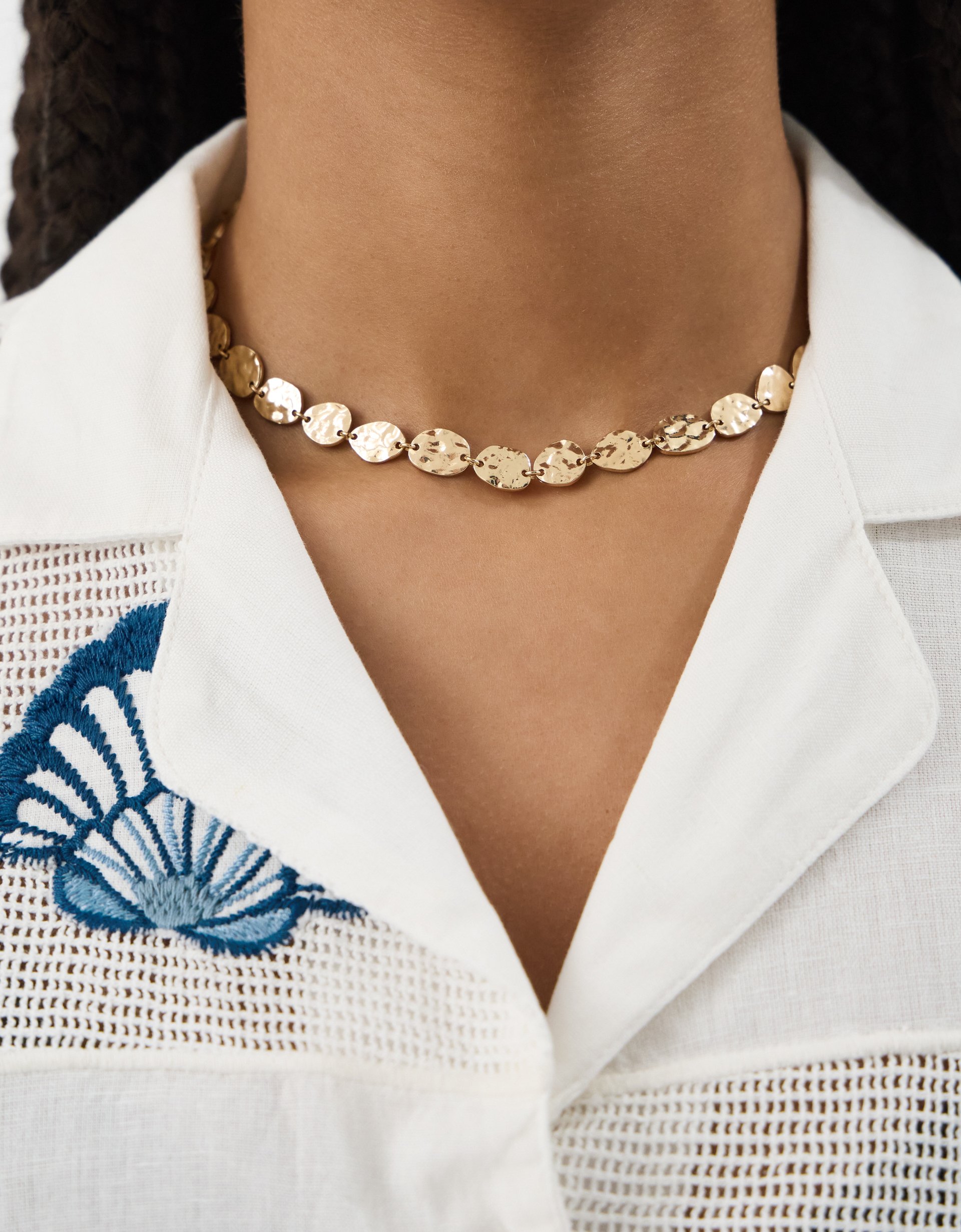 Strung with textured coins, this golden necklace is the standout necklace you've been searching for. Complete with a lobster clasp and extender, it's perfect for gifting to friends or keeping for yourself!
