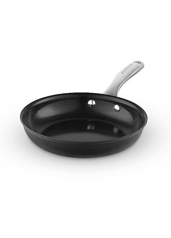 Get the most out of your kitchen with this 24cm Frying Pan from Good Food in partnership with Tower. Specially designed to be used with the vast Good Food recipe library, the frying pan offers simple serving to avoid unwanted spillages. Crafted from 3.5mm forged hard anodised aluminium, the pan offers rapid heat and even heat distribution for more thorough cooking with no heat spots, whilst a riveted steel handle offers comfort and easy manoeuvrability.Our Superior Ceramic non-stick coating is 10x stronger than standard non-stick coatings and offers superior food release and healthy cooking with minimal oil required, whilst it is also free from PFAS, PFOA, Lead and Cadmium. The pan is oven safe up to 220°C, whilst the full induction base allows for use on any hob type including induction for greater cooking versatility. It is dishwasher safe for simple and fuss free cleaning, although handwash is recommended to keep the ceramic coating in pristine condition.Forged 3.5mm anodized aluminium constructionBuilt for strength & durabilityNon-stick Fusion pro superior ceramic interior coatingRiveted steel handle for a comfortable & firm gripFree from harmful toxins such as PFOA lead & cadmiumOven safe up to 220 degrees CelsiusInduction base for quick & even heat distributionSuitable for all hob types including inductionPackaging type: Colour wrapDishwasher safe - hand wash recommended