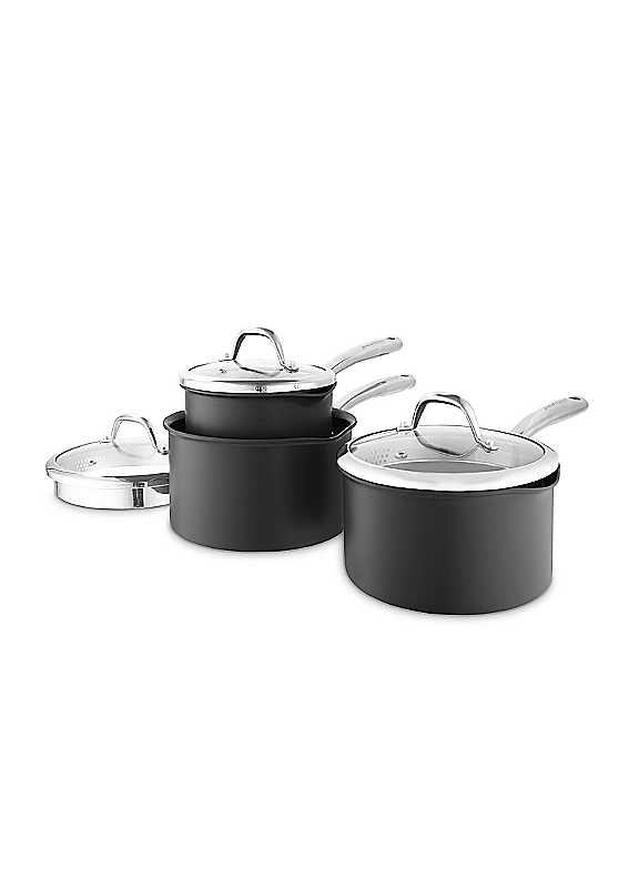 Good Food GF900252 Hard Anodized 3 Piece Saucepan Set Grey