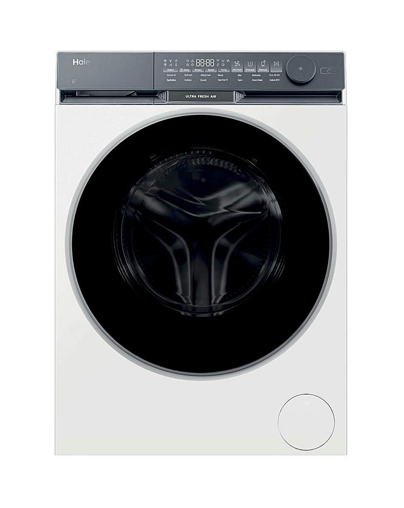 With the Haier X9 Hw100-B14387Uuk Washing Machine, enjoy the perfect blend of technology and design, ensuring every load benefits from advanced stain treatment and gentle, thorough care, keeping your clothes in excellent condition. Upgrade your laundry routine with this Haier Hw100 Ultra Fresh Washing Machine, a freestanding marvel equipped to handle the everyday demands of modern living. With a 10 Kg capacity and the efficient 1400 RPM Direct Motion engine, this machine promises precise, quiet, and powerful performance, engineered to last up to 25 years. Achieving an A energy class rating, it combines energy efficiency with outstanding results, offering 14 versatile programs tailored to your every need. Enjoy Ultra Fresh Air technology, which keeps your laundry smelling fresh for up to 12 hours post-wash, eliminating the need for rewashing due to musty odours. Fresh air circulates every 2 minutes, combating damp smells and bacteria build-up, ensuring clothes remain clean, fresh, and wrinkle-free - ideal for overnight loads or making the most of off-peak energy savings. Your laundry stays perfectly washed and, thanks to reduced interior moisture, clothes dry faster and the machine remains clean and ready for the next load. Delivering gentle care for every load, the machine features Extra Care technologies, including a Pillow Drum with cushion-shaped pads that protect fabrics from snagging. The larger 525mm drum allows for comprehensive cleaning for more garments, while the Anti-Crease function cuts wrinkles by 50%, preserving fabric quality with its slower spin speed. The 6-stain treatment option tackles tough stains effortlessly, enhancing every wash with the Prewash feature. Model: Hw100-B14387U1, Colour: White, Load Capacity: 10 Kg, Type: Freestanding, Spin Speed: 1400 Rpm, Engine Type: Direct Motion, Energy Class: A, Number of Programs: 14, Connectivity: Via hOn App (Smart Features)