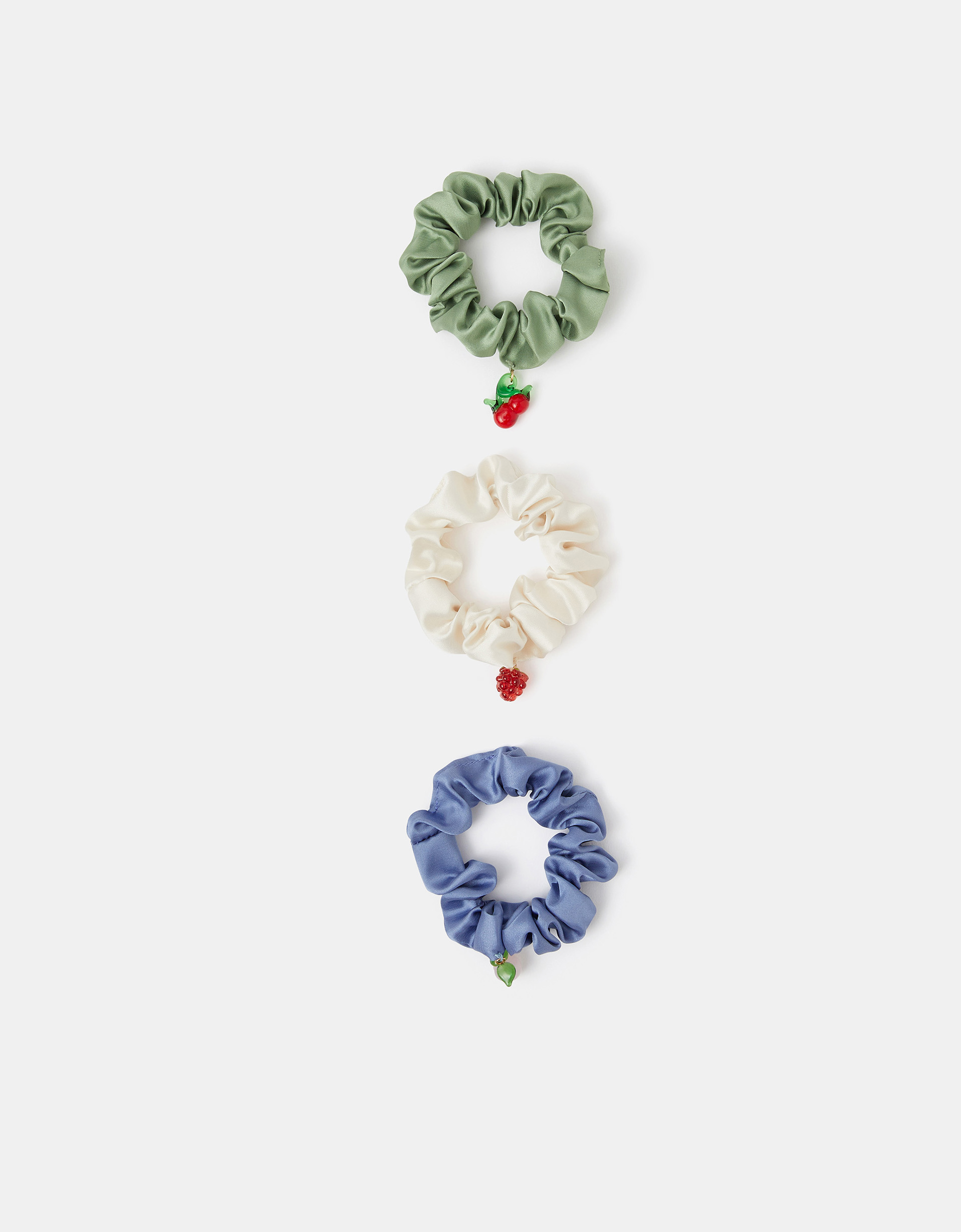 Green 3-Pack Glass Fruit Charm Hair Scrunchies - Accessorize
