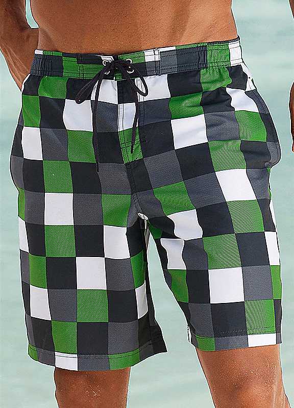 Stylish swimming shorts in a vibrant green check design that will look great as you catch that big wave, or if you're like the team here at Swimwear365, they'll look seriously stylish as you constantly fall off the board, and have to retreat to the beach hut for a warm cup of tea. With inner slip, inner pocket and elastic waistband with outer cord.Buffalo Shorts Features: Colour: Green Check Washable 100% Polyester Length in size M approx. 49 cm (19 in) Soft microfiberProtect your Skin.