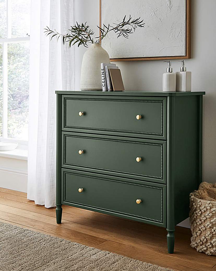 Darcy Small Chest of Drawers. 3 large drawers, small round handles, finished in a Green colour