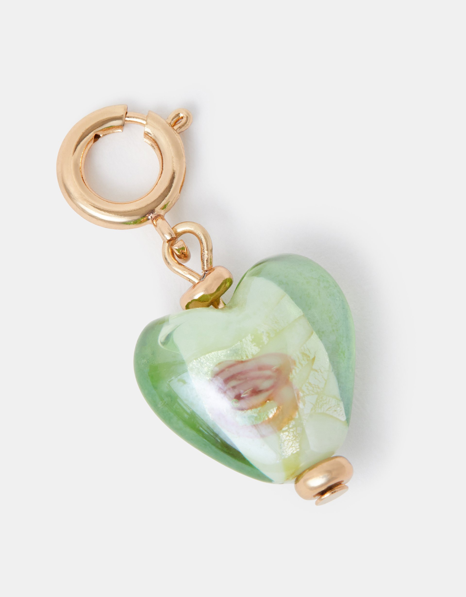 Coloured in a calming sage green, this glass heart charm is a love-ly addition to your necklace or bracelet stack. Finished with a gold-tone round clip fastening.
