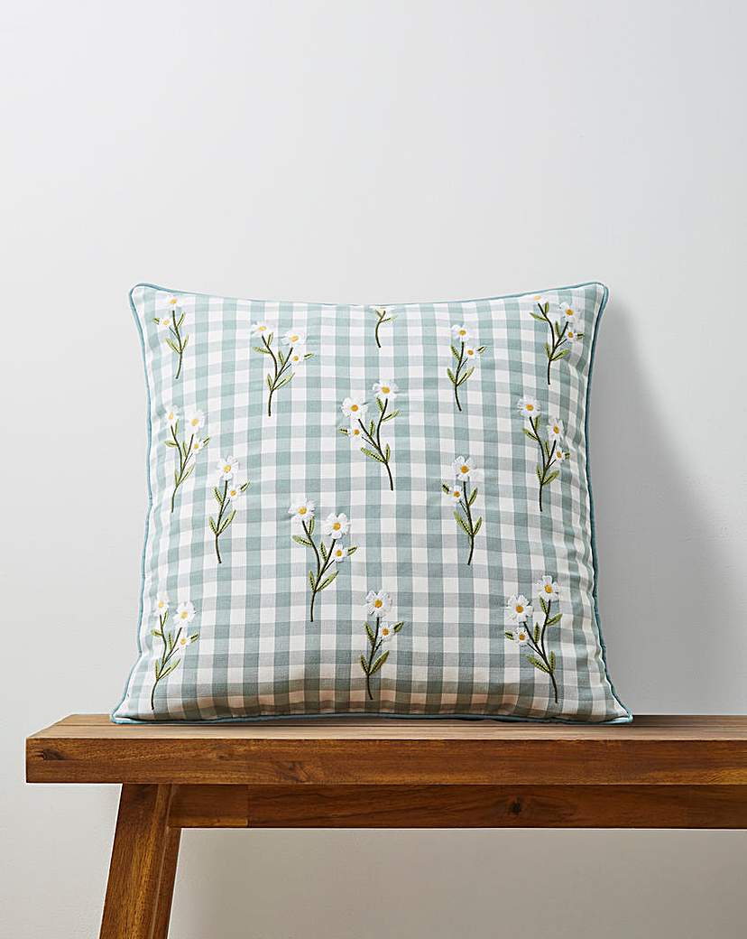 The Julipa Daisy Floral Embroidered Check Cushion features beautifully embroidered daisy floral design with timeless check pattern, adding a perfect touch of charm to any room. 30 degree wash.