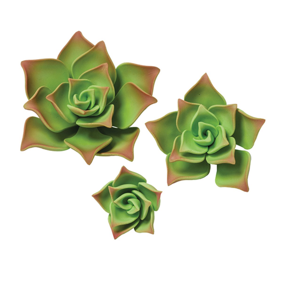 Pack of 3 green gum paste succulents, perfect for decorating special wedding cakes.