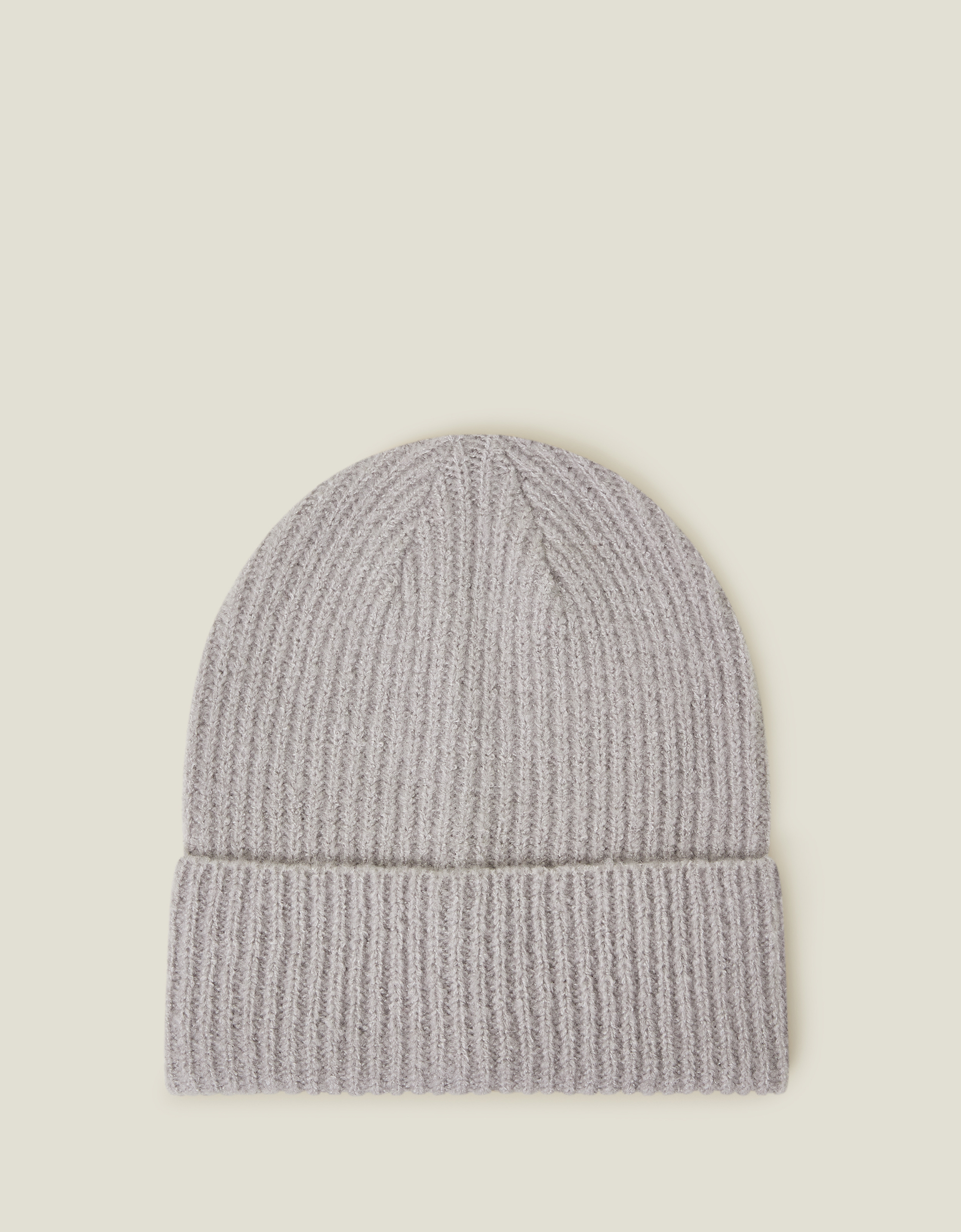Crafted in a soft knit with a classic rib finish, our Soho beanie hat is a staple of cold-weather styling. This minimalist design has a turn-up brim. Grey