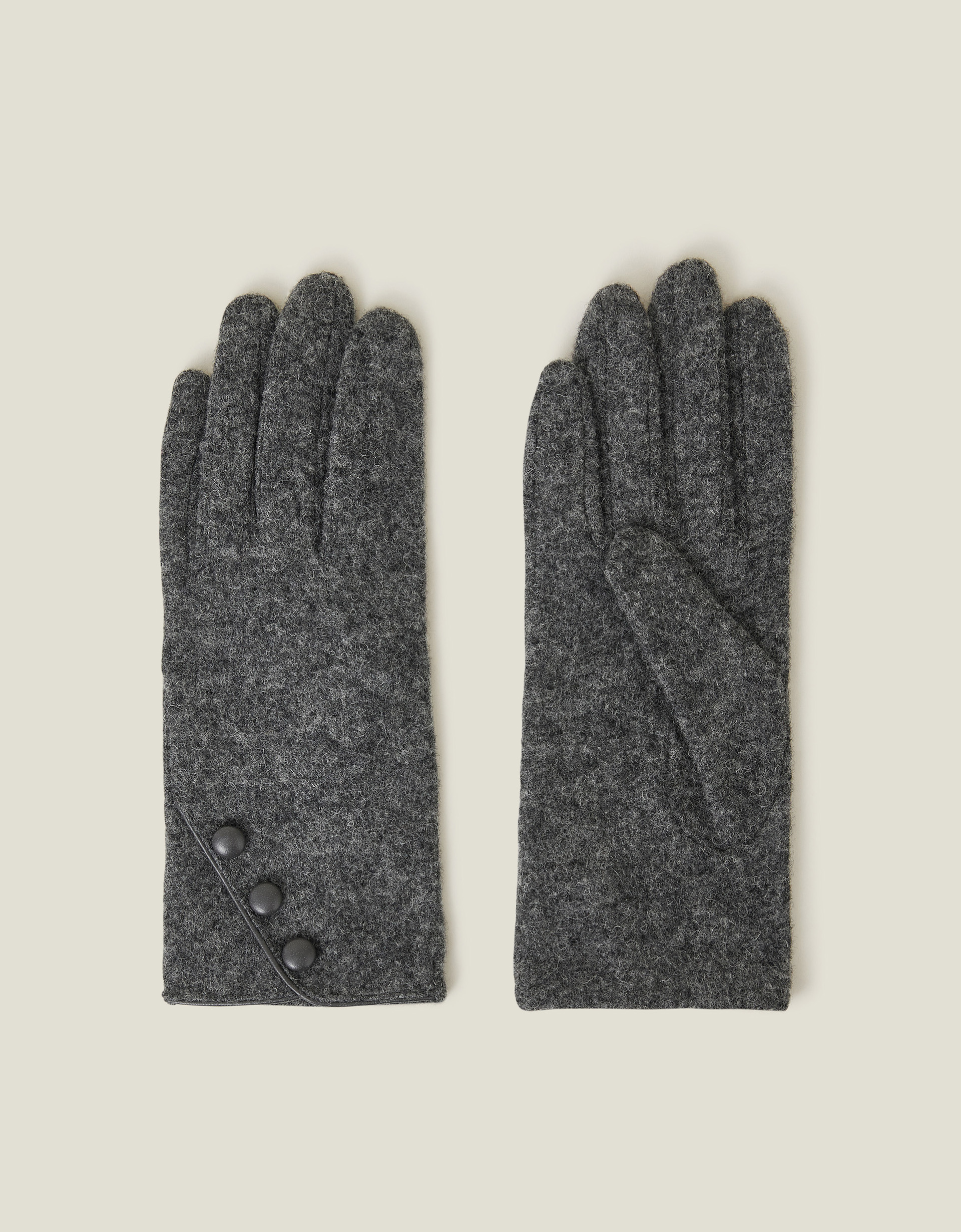 Grey Luxurious Knitted Wool Blend Touchscreen Button Gloves, Women's - Accessorize