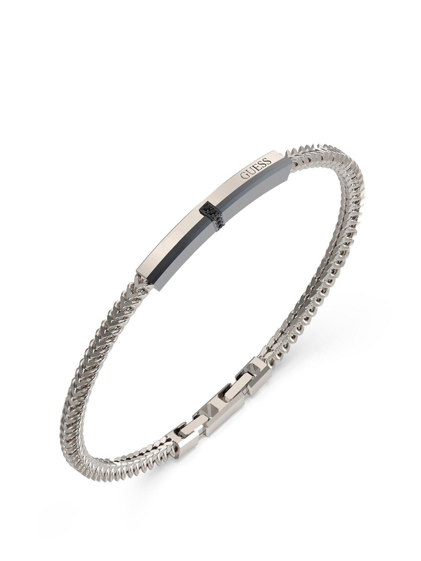 Guess Eclipse Plate Bracelet Steel Crystal Black Round Size & Fit Available In One Size Details Eclipse Plate Bracelet Steel Crystal Black Round By Guess Multi Contemporary Silver Tone Stunning Statement Piece Branded Name Plate With Subtle Shimmering Embellishment Can Be Worn As A Standalone Piece Or Stacked With Other Bracelets For A More Casual Look Length (In Cm): 19 Clasp: Y Expandable: N Fashion Jewellery Type: Bracelets Metal Type: Stainless Steel