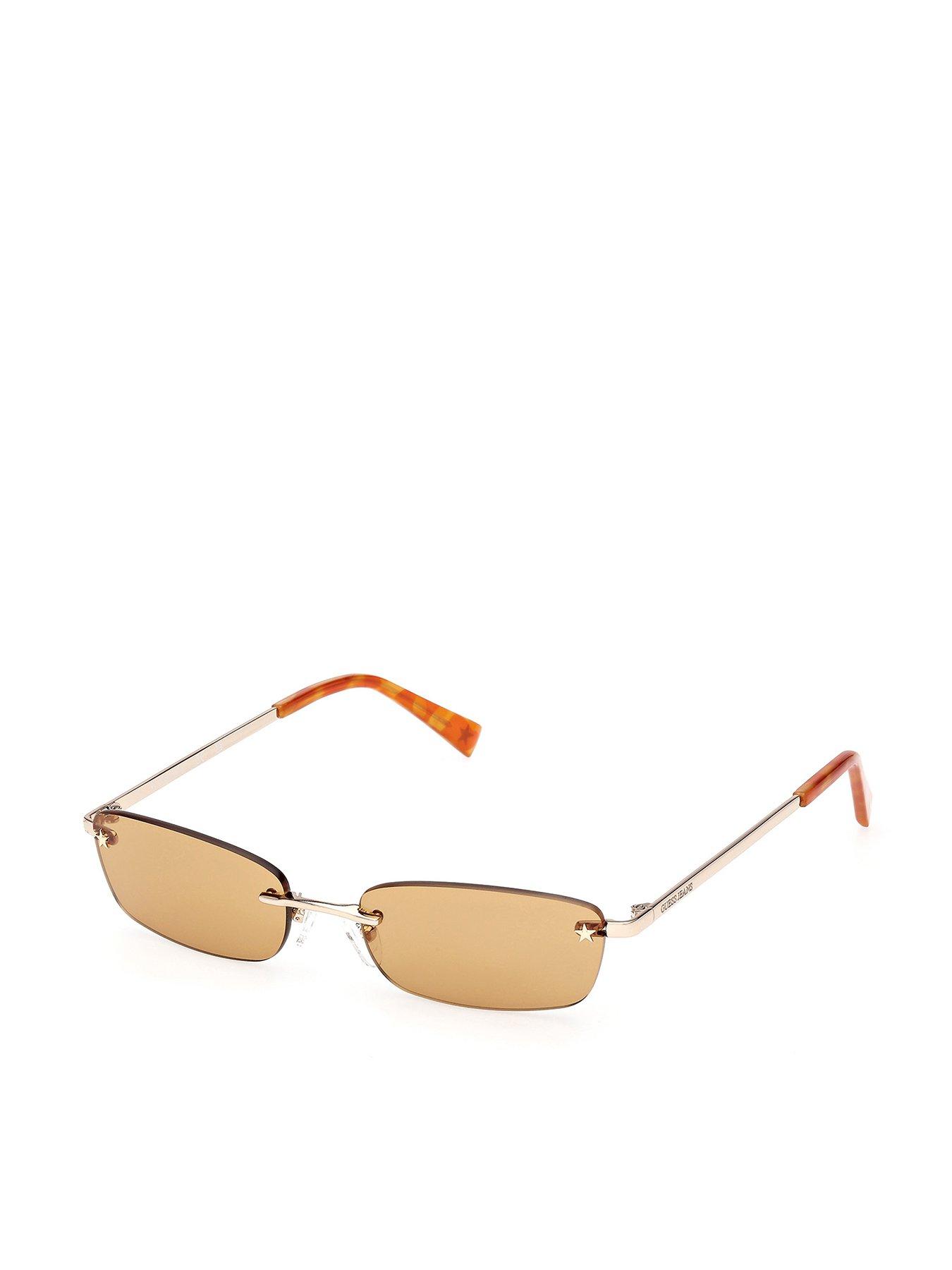 Guess Jeans Rectangular Metal Sunglasses Size & Fit One Size Details Rectangular Metal Sunglasses By Guess Jeans Gold Rimless Frame Coloured Lens Metal Arm Detail Single Bridge With Adjustable Silicone Nose Pads Material & Care Material Content: Metal Sunglasses Washing Instructions: Wipe Clean