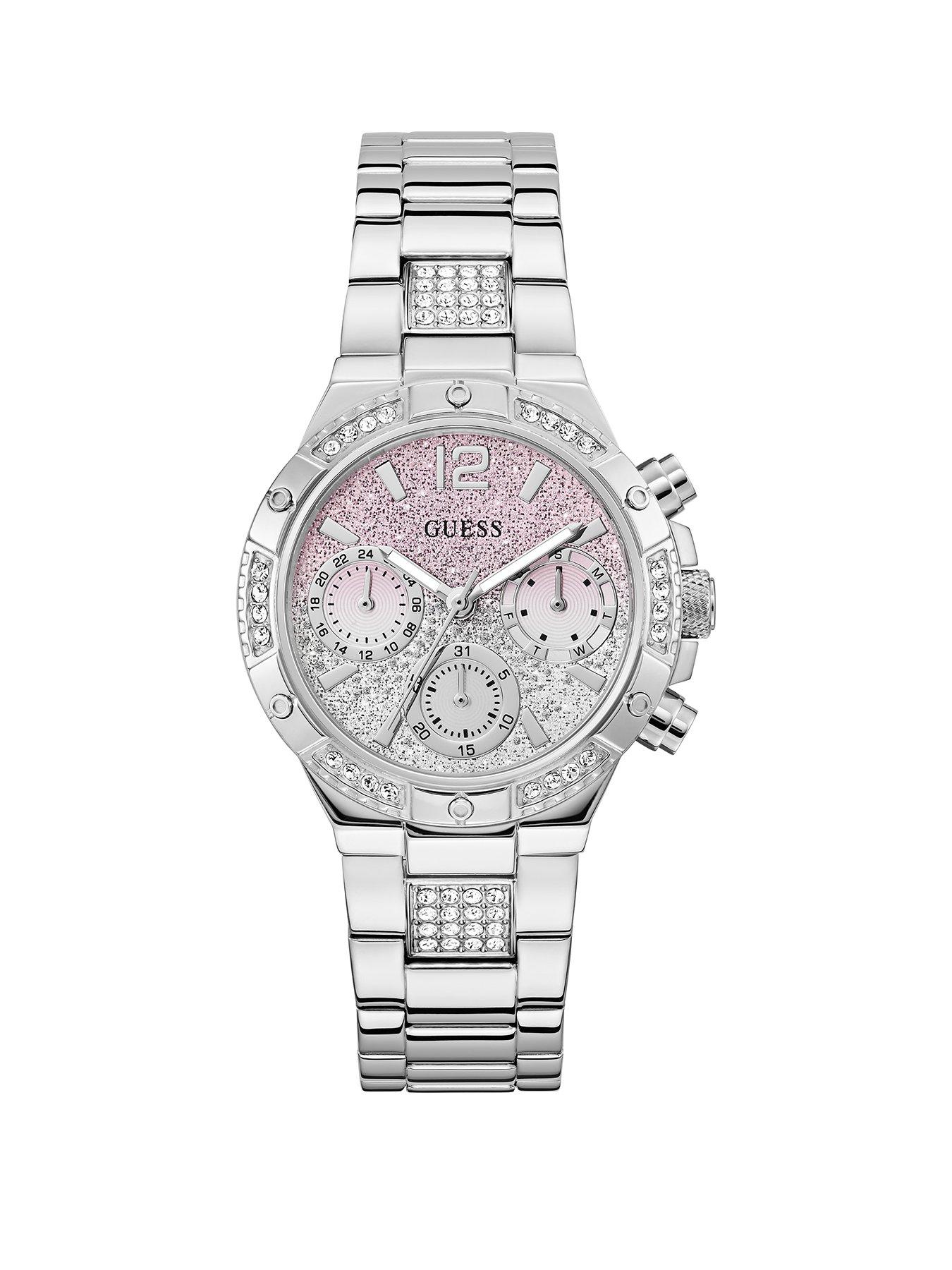 Guess Stainless Steel Ladies Watch With Pink Ombre Glitz Dial And Stainless Steel Stone Set Bracelet Guess Stainless Steel Ladies Watch With Pink Ombre Glitz Dial And Stainless Steel Stone Set Bracelet 24Hr Display: N Depth: 10.05 Mm Height: 38 Mm Width: 38 Mm Case Diameter (In Cm): 3.8 Case Height (In Cm): 3.8 Case Length (In Cm): 3.8 Case Shape: Round Case Width (In Cm): 3.8 Movement: Japanese Quartz (Battery) Strap Material: Stainless Steel Water Resistant: Y